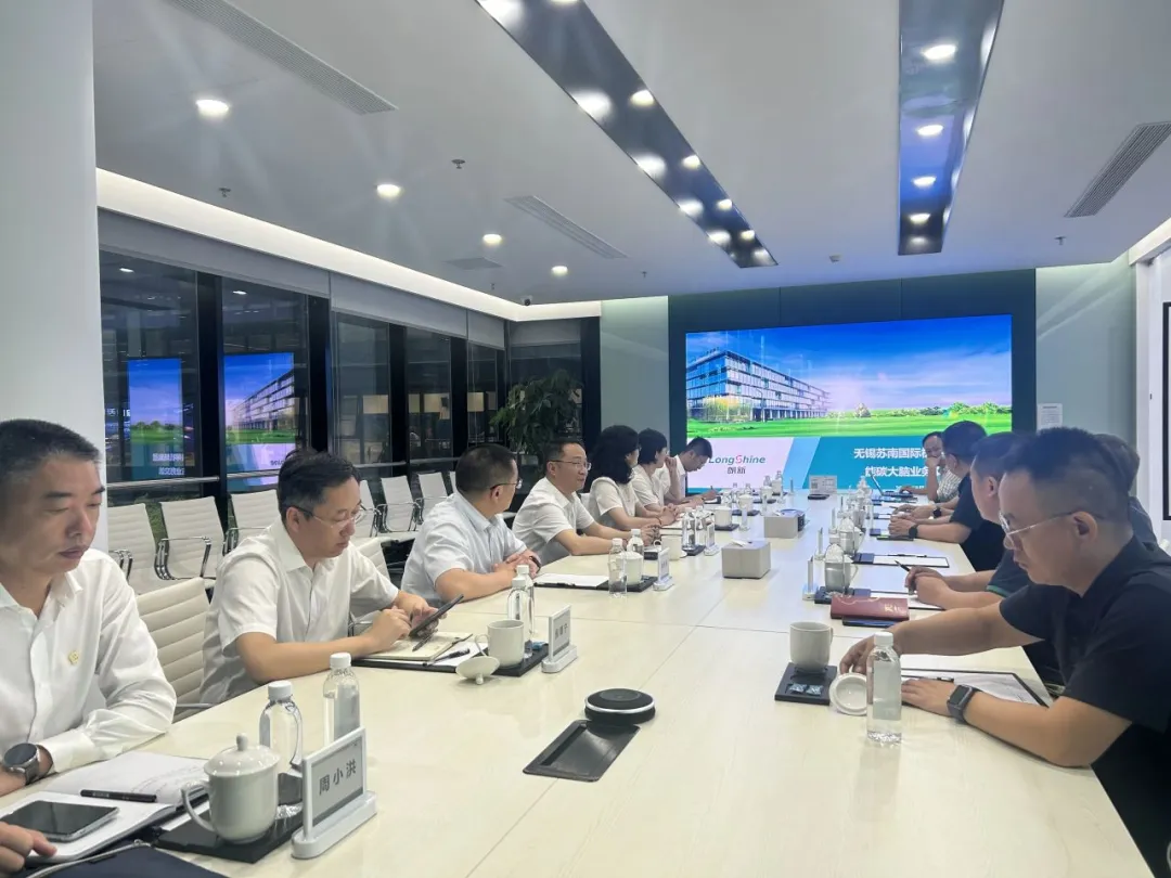 /近日,无锡苏南国际机场集团党委书记、董事局主席刘震宇一行莅临朗新集团参观交流。朗新集团党委书记、副董事长张明平及各部门负责人陪同。